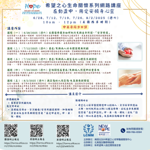 【社區合作】希望之心生命關懷系列網路講座 – 在動盪中,用愛安頓身心靈 6/28/24 -8/2/24(六)