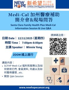 【綫上講座分享】12/11/25 (四) Medi-Cal 加州醫療補助簡介會&現場問答 Santa Clara Family Health Plan Medi-Cal Information Session & Live Q&A